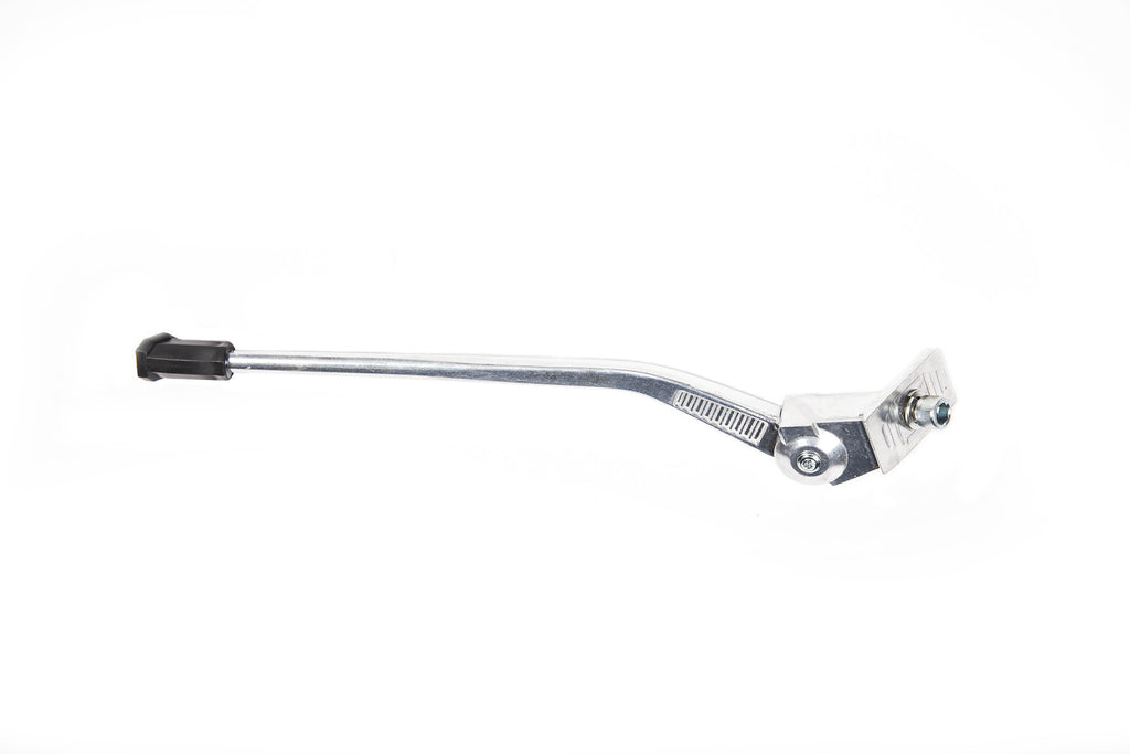 Your bike never gets tired.  It never needs to lay down.  It doesn't want to lean against the wall like a leatherless Fonz.  Your bike wants to stand proudly after its ferried you across town, so it can be ready for a glorious getaway.  Enter the kick stand!  Over ten inches of bike propping power that tucks away neatly while you ride.  Don't tether your bike's dignity to your presence.  Do the right thing and grab a kick stand so your bike can be as magnificent as it deserves whether you're around or not.